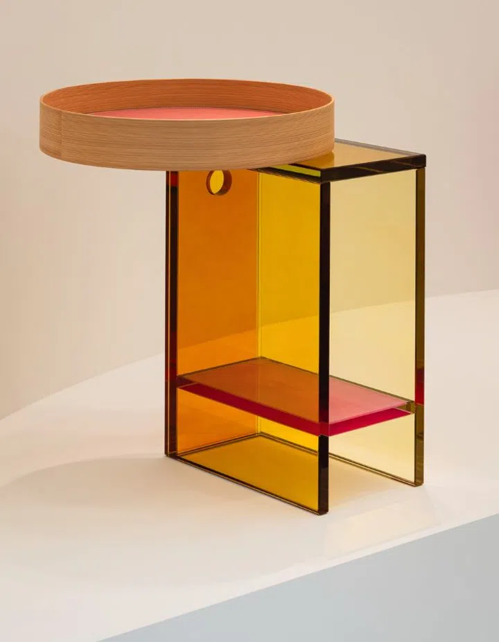 One of the highlights of Milan Design Week 2025, is definitely the new home collections by Hermes. This year, architect and artistic director of Hermès collections for the home, Alexis Fabry, spotlights the poetics of glass — explored here through a range of artisanal techniques that highlight its texture, transparency, and depth. One of the key pieces is the Pivot d’Hermès table by Tomas Alonso, measuring 75 by 60 by 55.5cm. Alonso seeks balance, plays with ideas and materials like the colour-wheel inspired lacquered, the tabletop, a round box tabletop in sugi (Japanese cedar) which moves on an eccentric axis and gives the table its unexpected movement.