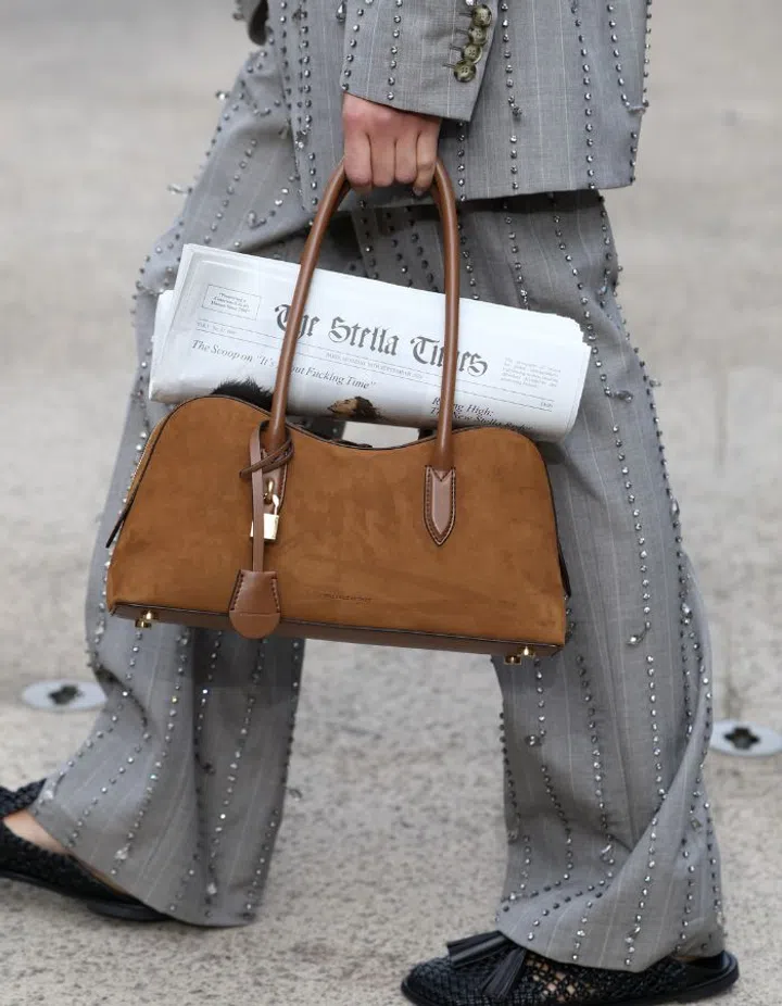 The Alaia Le Teckel Bag has been dominating the street style set for a few seasons now but we are not seeing a slow down when it comes to the east-west bag trend. How do you define this style of bag that just screams effortless elegance? Look out for thin, long straps in the bag’s middle section and a stretched- out silhouette (it can fit a ton of things). This season, we’re crushing on a new east-west bag from Stella McCartney - the new Stella Ryder bag - reminiscent of a vintage ‘60s style purse - is handcrafted by artisans in Italy from cruelty-free alternatives using recycled and grape-based innovations.