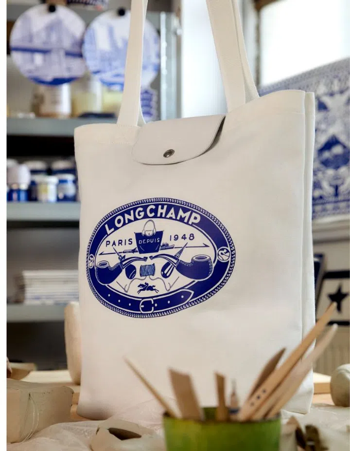 A collection designed in entirely blue and white, the Longchamp x Constantin Riant collaboration dreams up bags, accessories, and ready-to-wear clothes through French artist Constantin Riant’s expressive works across illustration, painting, and ceramics. Constantin’s partnership with Longchamp brings to life his adventures through Paris, seeking out neighbourhood artisans. One of the key pieces from the collection — besides the Le Pliage tote bag — is the Les Artisans de Paris silk scarf. Stunning façades of Parisian treasures like quaint bookshops, cafes and florists come alive here in his sketch-like lines.