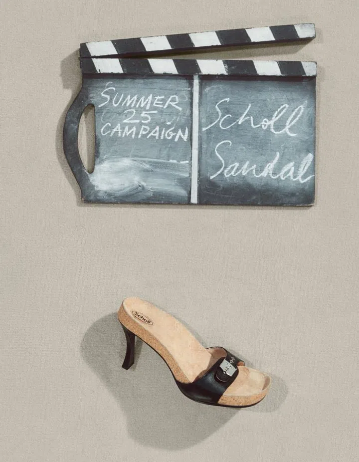 You can always trust Balenciaga’s former creative director Demna for unexpected collaborations. Remember Crocs and Under Armour? Debuting in the Fall 25 collection, Balenciaga teamed up with 121-year-old American brand Scholl — a collaboration born from Demna’s desire to create the most comfortable heels ever made, infusing the House’s footwear silhouettes with the unparalleled comfort of Scholl products. The collection features heeled mules, booties and boots, as well as flat sandals and mules in Nappa sheepskin with concealed cork signature Scholl footbeds. Calfskin sandals with exposed cork soles and Scholl’s distinctive metal buckles pay homage to the original 1956 Pescura clogs made famous by Twiggy and Jean Shrimpton. The shoes are offered in both heeled and flat variations, including beechwood platform clogs with perforated uppers and co-branded renditions of Balenciaga’s signature pool slide sandals.