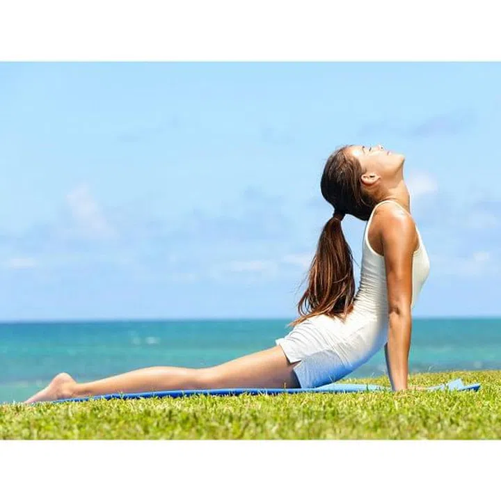 How to: lie on your stomach with your toes flat against the floor. Place your hands by your ribs and as your exhale, gently push upwards such that your torso and stomach is lifted off the floor. Hold this pose for 1 minute, breathing deeply. Return to starting and repeat as many times as you like.