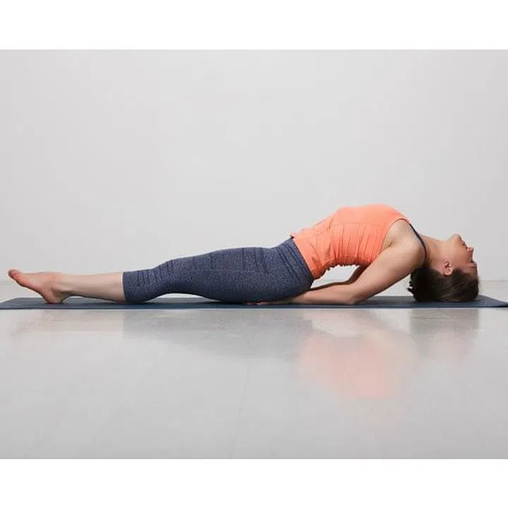 How to: lie flat on your back and place your hands, by your ears with your palms pointing back. Slowly lift yourself off the ground, evenly distributing the weight between your hands and legs. Hold the pose for as long as possible, and gently lower yourself to the ground to release the asana. Repeat 3-5 times.