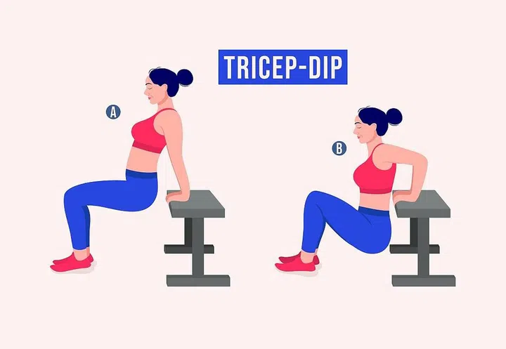 Trying to tone that tricky tricep area? Natalie recommends doing dips to work those hard-to-firm places on the back of the arms. “Try dips with your legs bent for beginners, and straighten legs out for a challenge.”