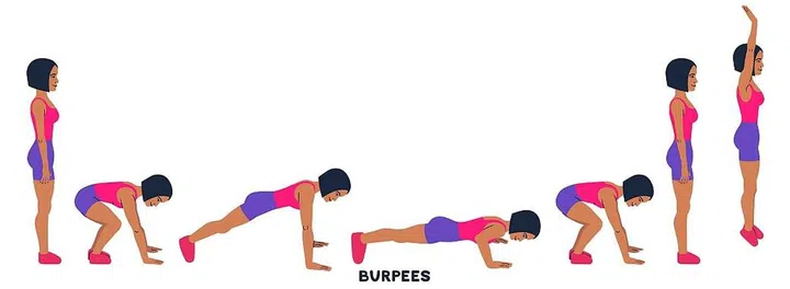 While burpees are no one’s favourite bodyweight exercise, according to Natalie, the burpee is great for burning fat and getting a full-body workout. “The correct version is to have your chest to the ground, but you can scale it without your chest hitting the ground.” She adds that burpees are more explosive than hill sprints, and they help to improve your coordination.