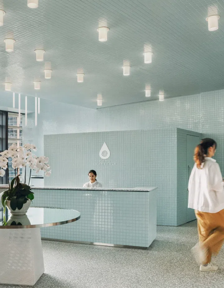 You’ll be nestled amidst serene chic tiles and terrazzo in soothing hues of turquoise and blue when you take your ice baths at Como Shambhala.