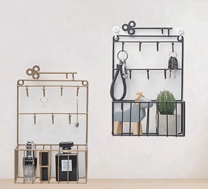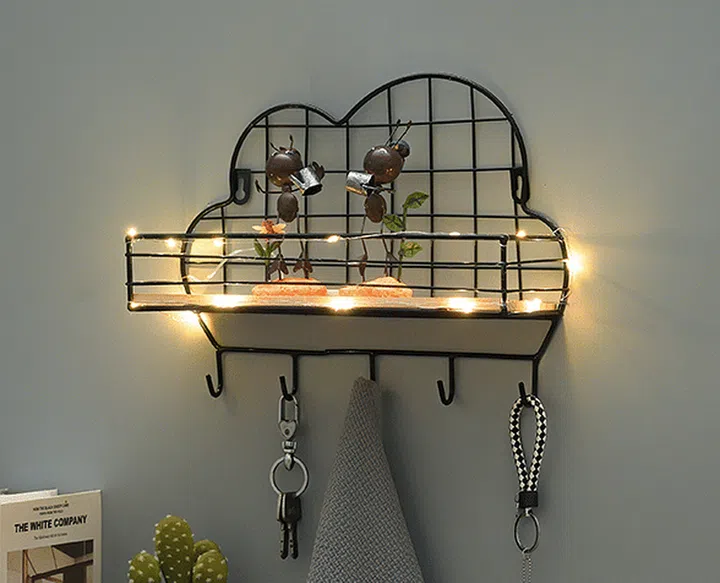 This cloud-shaped organiser adds not only space to hang up your keys and masks when you get home, but also has room for storing mail. It comes in white, black, and gold.