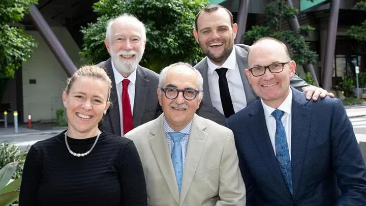 (From left) Associate Professor Paige Little, Adjunct Professor Geoff Askin and Adjunct Associate Professor Robert Labrom, with (back, from left) Emeritus Professor Mark Pearcy and Sealy R&D Manager Daniel Green. They sit on Sealy’s Orthopaedic Advisory Board, an independent body of global experts in spinal research and sleep science.