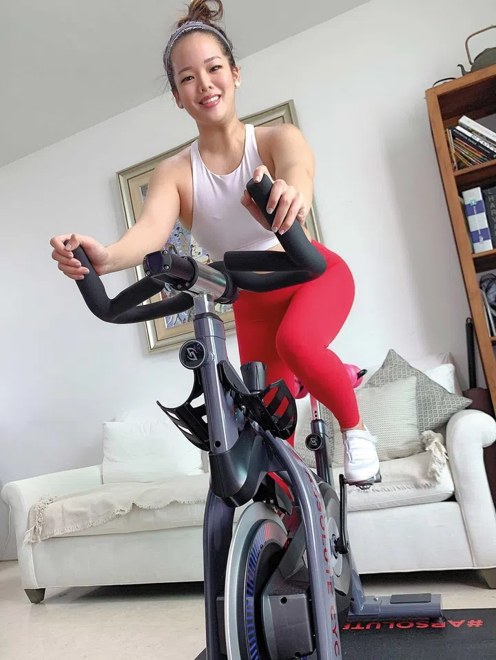 Her regular workout regime saw her attending rhythm cycling classes at Absolute Cycle, HIIT sessions at Barry's Bootcamp, and weight-related workouts at Anytime Fitness, a 24-hour gym located below her condominium. This all came to a halt when circuit breaker measures kicked in on April 7.