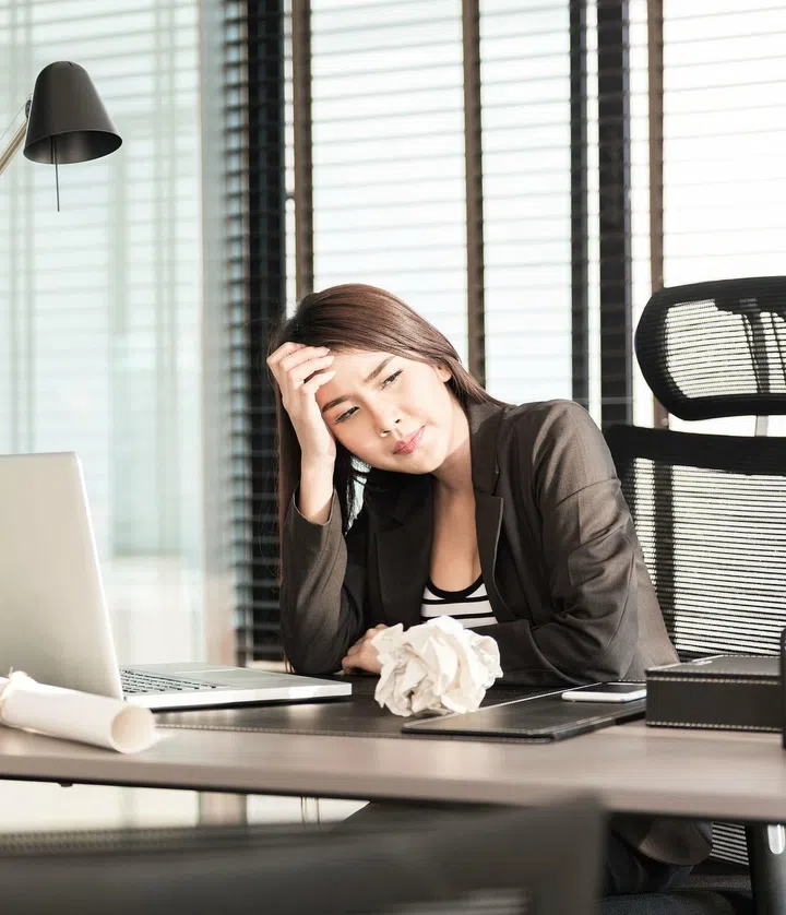 “When drowning in e-mails, I try to be mindful of how I’m breathing – whether it’s shallow or deep,” shares Ferina Aziz, founder of The Wellness Report. Shallow gasps usually signal anxiety, so draw deep breaths to calm your nerves.