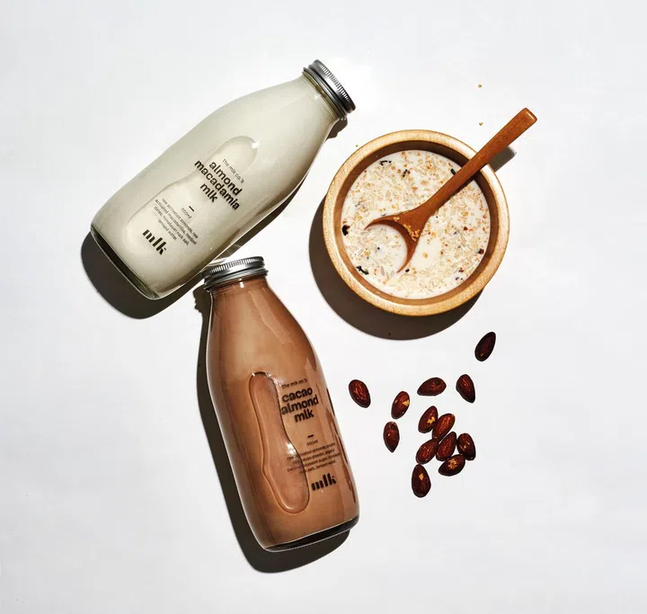 Besides its original flavour, The Mlk Co has two new offerings – macadamia and cacao. A weekly delivery of a one-litre bottle costs $24.28. Find out more at https://themlk.co.
