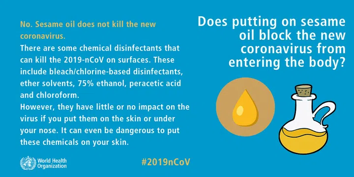 10. DOES PUTTING ON SESAME OIL BLOCK THE CORONAVIRUS FROM ENTERING THE BODY?