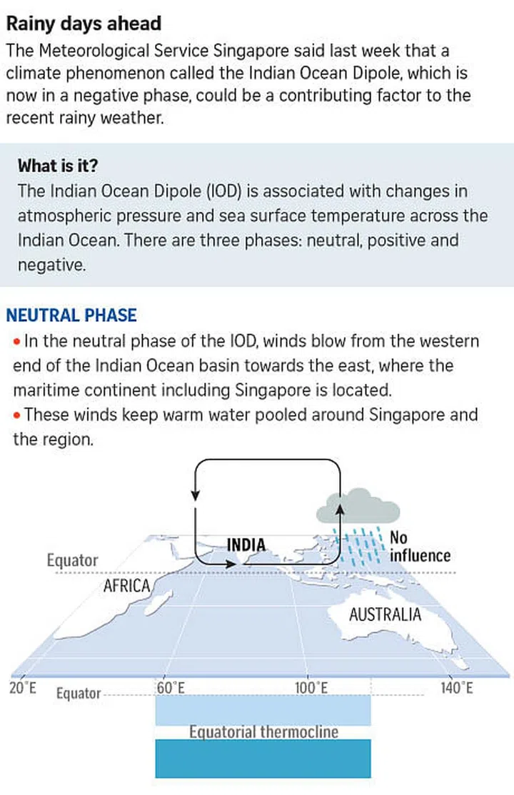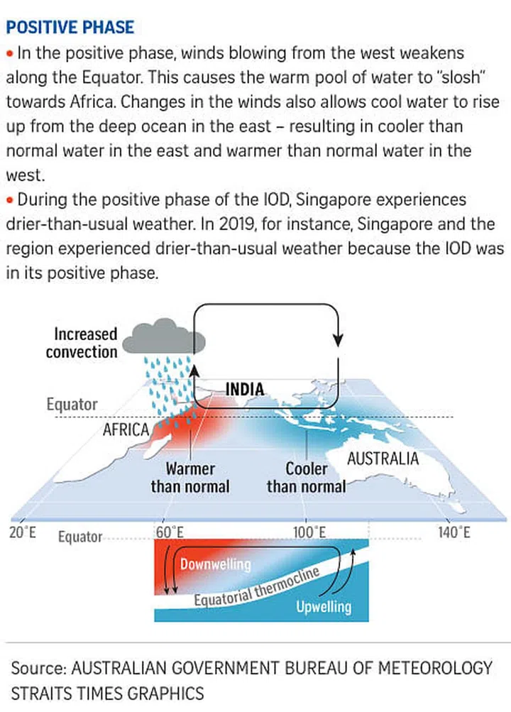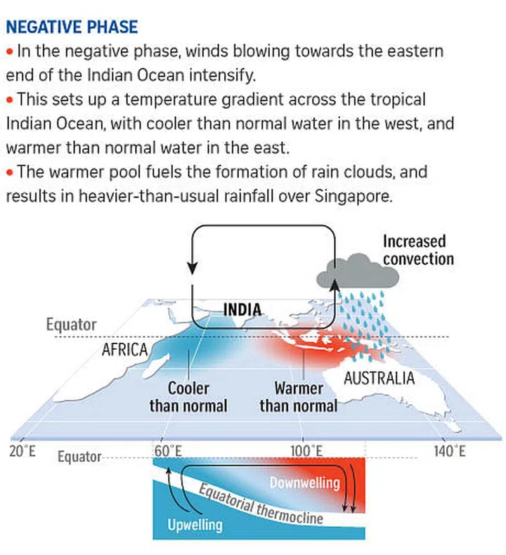 In this phase, the IOD brings more rain than usual to countries in the eastern end of the Indian Ocean basin, including Singapore.