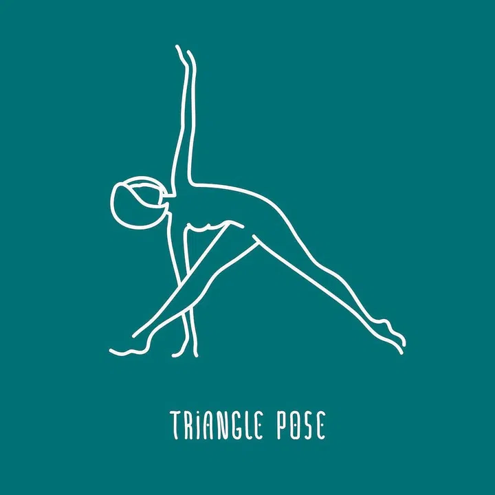 For this pose, stand with your feet placed wider than your hips and your arms at your sides. Your right toes should point towards the right wall while your left toes point slightly inwards. Take a deep breath. As you exhale, bend your body to the right while keeping your waist straight. Stretch your left arm upwards and your right arm downwards with both arms in a straight line. Rest your right hand on your leg, floor, or a block, while your left hand extends up towards the ceiling. Hold this pose for one minute and then switch sides.