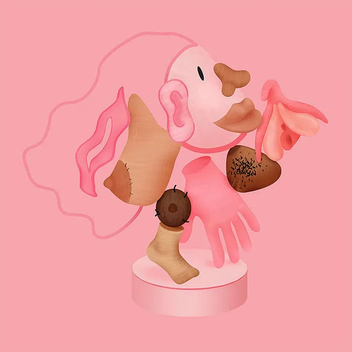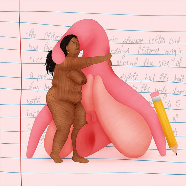 A reimagination of the Cortical Homunculus, the representation of body parts based on how the brain processes sensory information from them. It’s usually based on bodies with penises SO we took the vulva perspective!