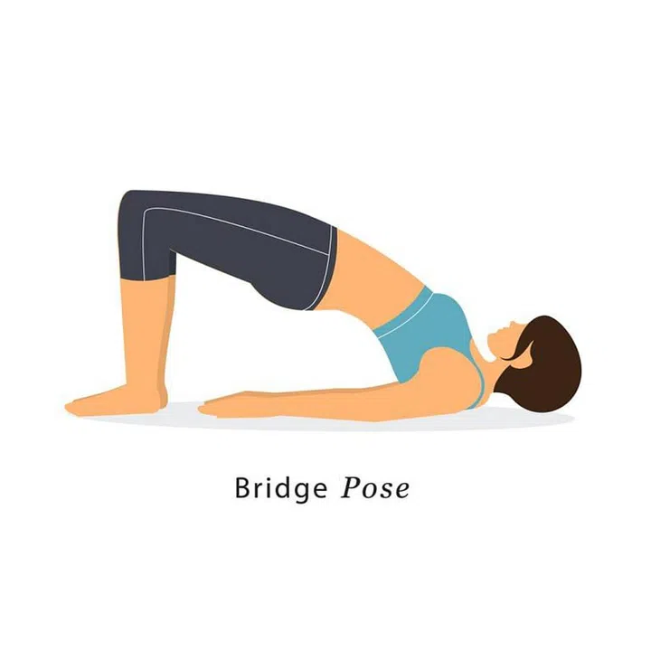Lie on your back, with both fists beside you. Then lift both knees, keeping your feet on the ground. After which, lift your buttocks. Ensure that your legs and thighs are parallel to the floor, with your hands below your torso region.
