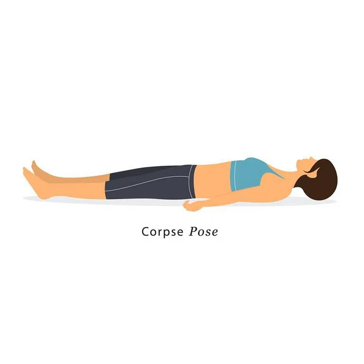 With your back on the mat, place your hands slightly away from your body, at about 45 degrees. Ensure that your hands remain open, and let your feet relax as well. Breathe naturally, but make sure that your body is always facing up.