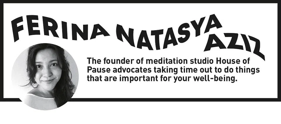 With more time on your hands now, keeping yourself on the move and being busy aren’t the only ways to feel productive. Instead, you should be more mindful of your body and focus on calming your senses, says Ferina Natasya Aziz, 32, founder of meditation studio House of Pause, which is also a guide to slow living.