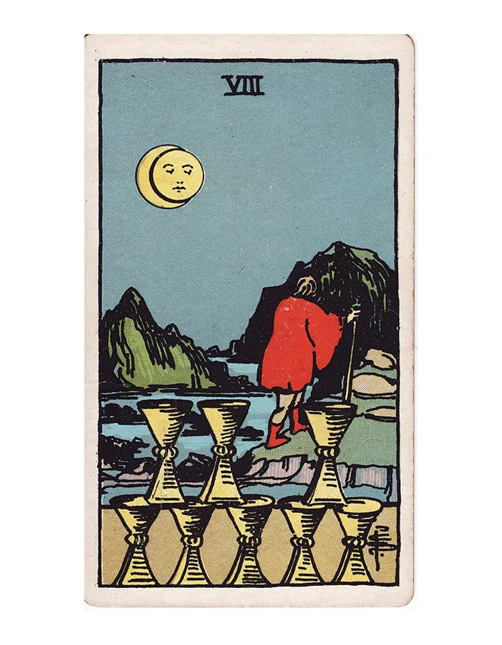 Aww, is someone having trouble saying goodbye? Sometimes “not good enough” is a good enough reason – if you let yourself believe you are worthy of more. The Eight of Cups represents walking away from a situation that is stable, but emotionally dissatisfying. Perhaps something in your life is going “just fine”, but like the stack of cups in the foreground, you can’t ignore the feeling that something is missing. Nothing hurts per se, except for the pain of admitting that you want and deserve more than just “fine”. The advice of this card is to give yourself a chance to be fully fulfilled by taking a chance on the unknown. You could stay with this gaping hole, or you could try to find that missing cup of fulfilment. You’re not a quitter if you’re leaving to pursue your highest potential, Cappy! Settling for mediocre doesn’t do anyone justice. The only person robbing you of your happiness is the you that’s afraid to aim higher.
