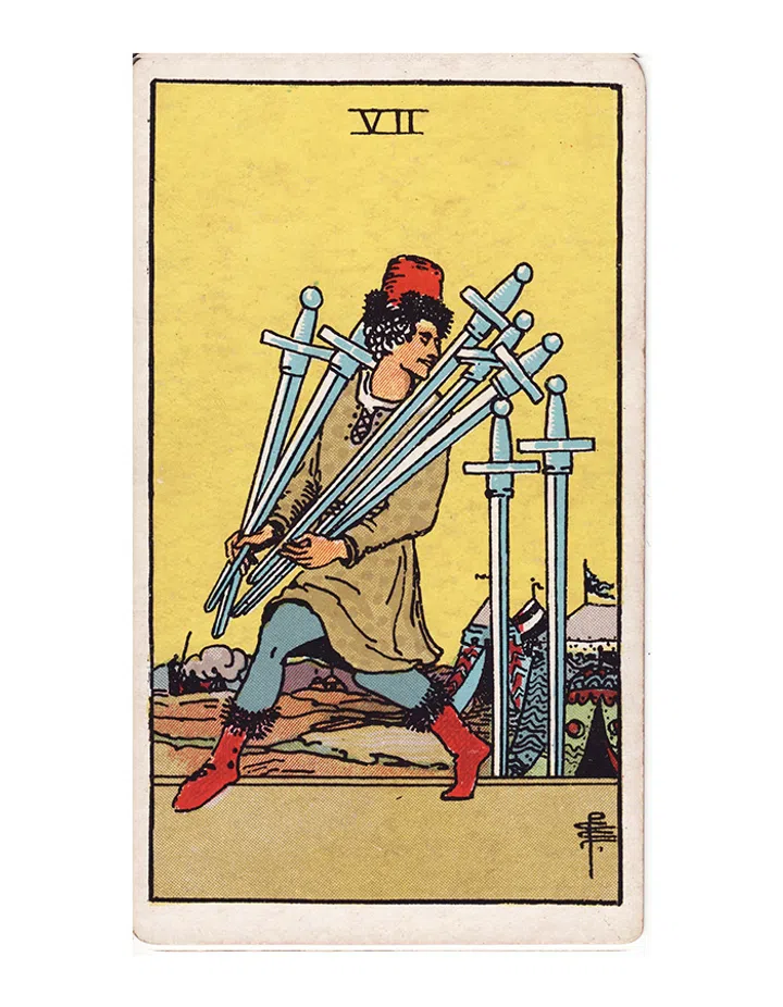 Fool you once, shame on them. Fool you twice – what’re you still doing in this game of charades? The Seven of Swords represents being strategic, but on the flip side, it also represents deception. Is there a situation in your life at the moment that is lacking in integrity? Perhaps you or someone you’re dealing is concealing some truth in order to preserve the peace. But make no mistake – a peace held together by falsehoods is no peace at all. The advice of this card is to set yourself free by speaking your truth. Maintaining a lie is exhausting work and over time, can corrode us from the inside out. Is lying really the kinder thing to do here? Or is it just avoiding the work of being honest? Either way, deception holds everyone its prisoner, regardless of our intentions. Live in a lie long enough and it can start to corrupt your reality. The truth has its own wings, Aqua. Set it free.