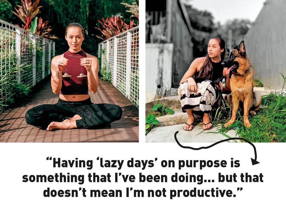 The 31-year-old adds: “Having ‘lazy days’ on purpose is something that I’ve been doing. I focus on one task for a long period of time, but that doesn’t mean I’m not productive at all.”